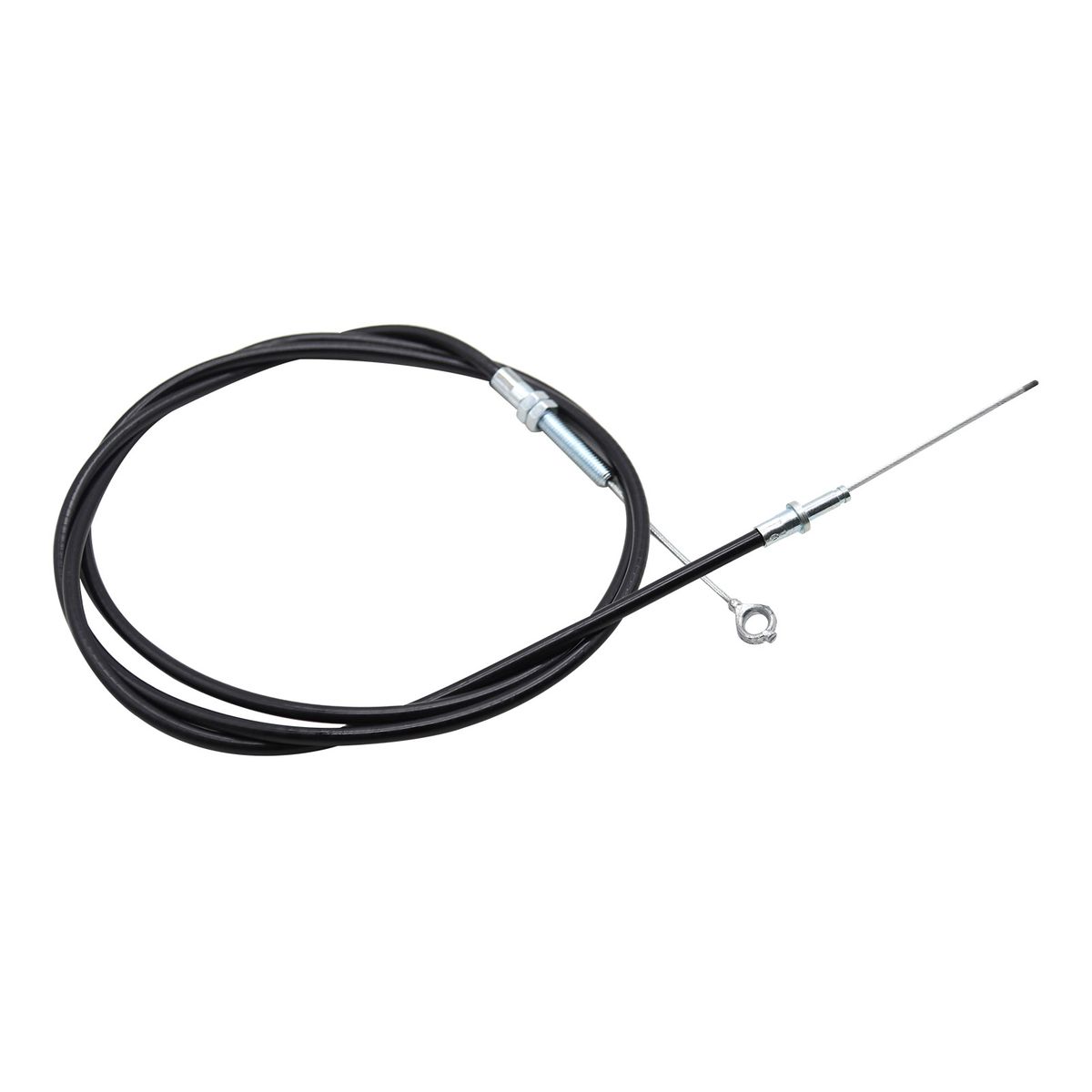 The chrome color cable head is the original heavy duty one, very strong and durable compare to other material, at least you can use for a long time.71 quot; Long Throttle Cable with Enhanced Heavy Duty Eyelet and 63 quot; Casing that has a Stronger and Thicker Inner Wire. Eyelet on one end where cable bolts to throttle pedal, other end is straight. Used on all replacement for Manco 4xx model karts.