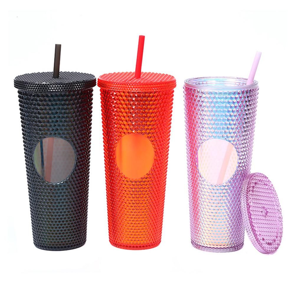Buy 710ML/24OZ Large Capacity Water Cup Fully Studded Matte Tumbler Reusable Plastic Cup with Wide Opening Leak-Proof Lid Straw in Nigeria