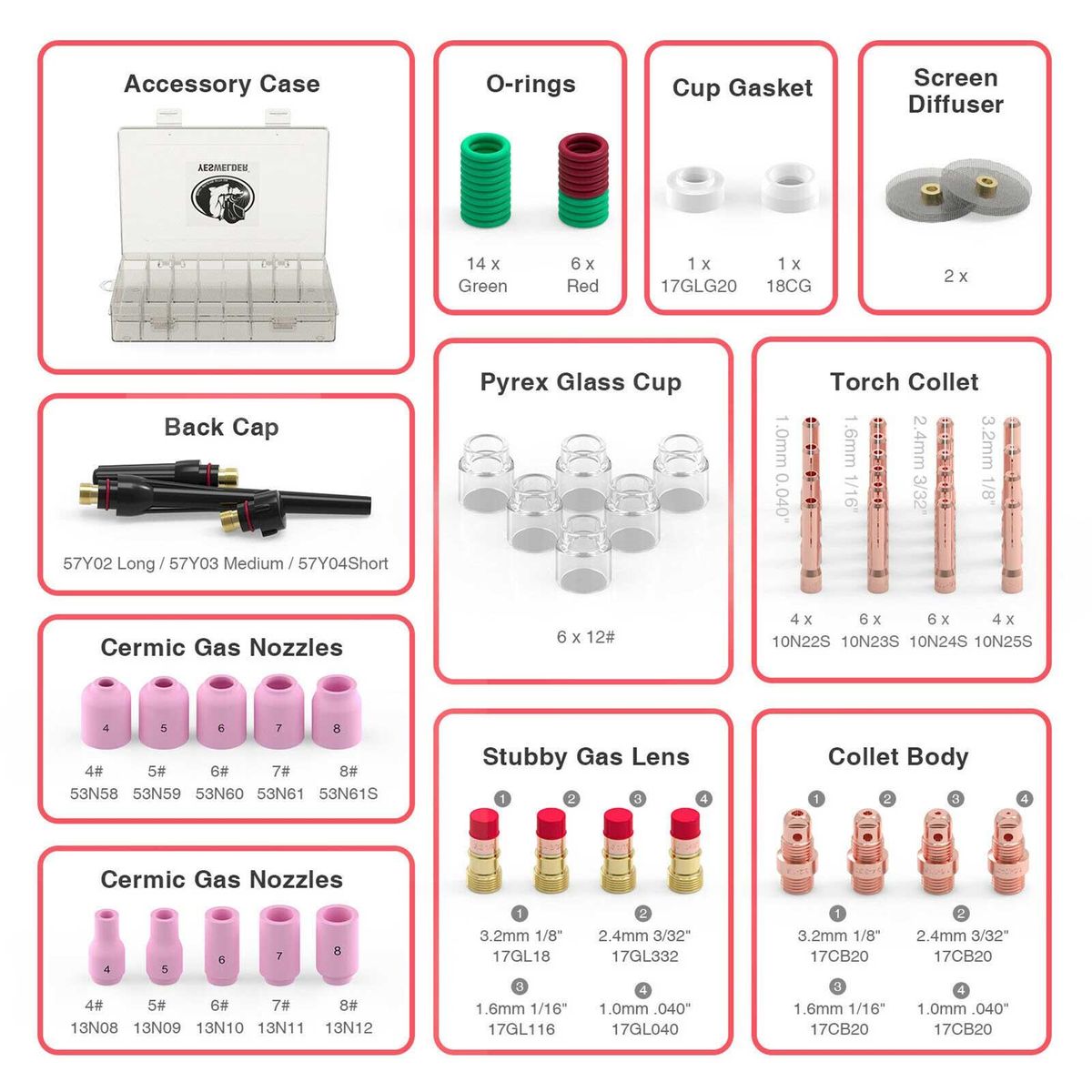 Buy 71Pcs Stubby Gas Lens Glass Cups O-rings Collets Gas Nozzles Kit for WP-17/18/26 TIG Welding Torch in Nigeria