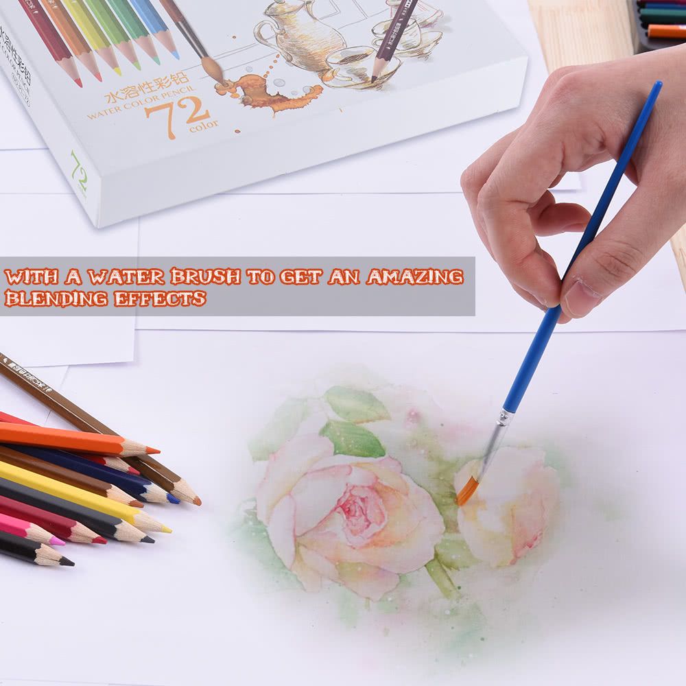 72 water soluble color pre-sharpened pencils, widely used for sketching, drawing, layering, blending, burnishing.
