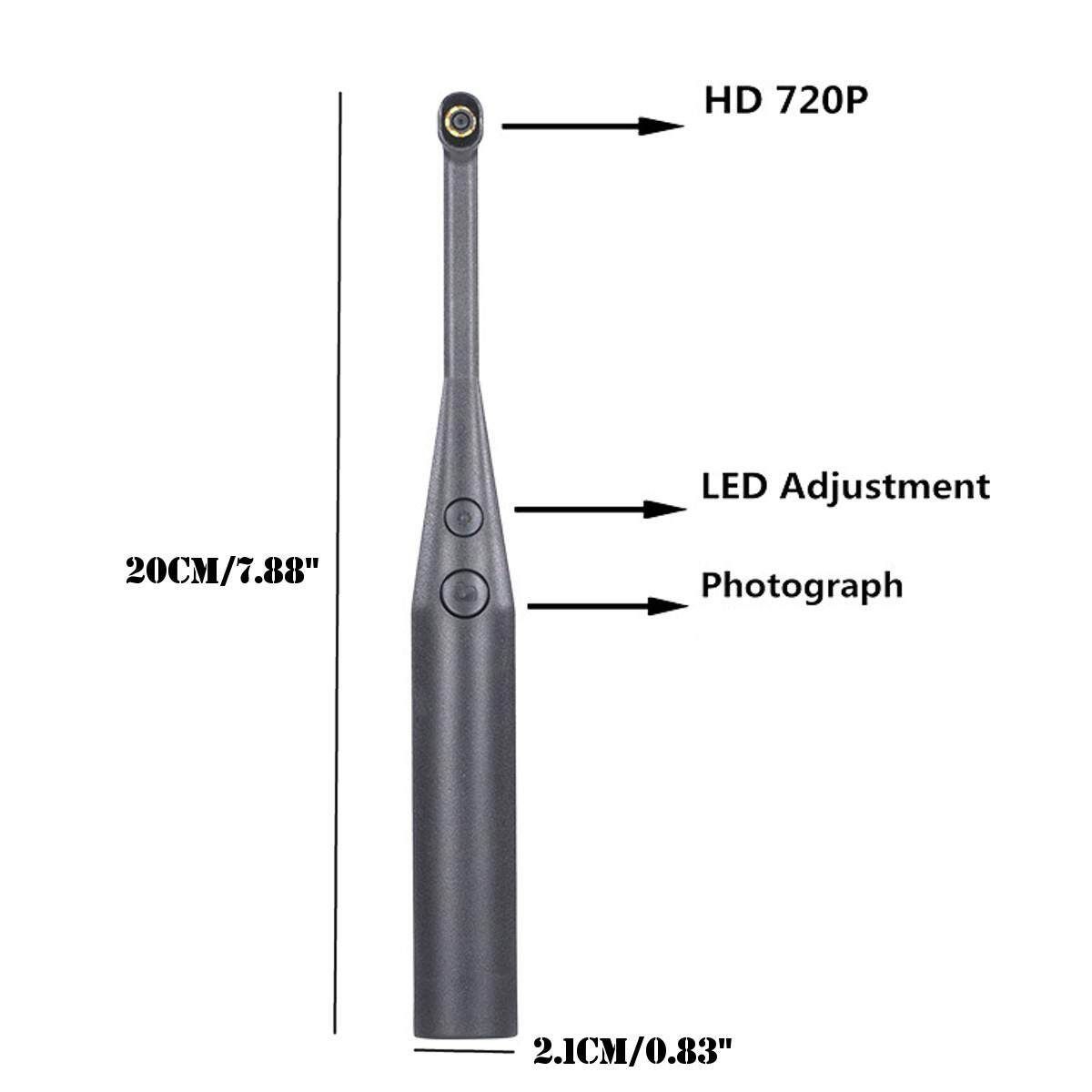 720P HD Black Dental Oral Intraoral Camera Endoscope Teeth Mirror with 6 LED Adjustable Light Specifications: 100% . Type:Dental Endoscope :Black Sensor:2 million pixels Output resolution:1600*1200 for computer and 1280*720P for Android phone Depth of field:2-4cm Supply:USB 2.0 and Micro interface Waterproof Grade:IP67 6 LED adjustable Light Package Size:approx.23x8x3cm/9x3.2x1.2" (1cm=10mm=0.39inch) Package Included: 1X Dental Endoscope with USB Cable 1X USB conversion head 1X Chinese English User Manual Product Description: This product is a household dental examination tool. It uses wide-angle high-definition lens. When using, it has a large visual angle and be more convenient to check oral problems. Handle toothbrush structure design, more ergonomic design, more comfortable to use! The Photo Key function is available on the PC side. (Notice: Children under 10 years old should be used under the guardianship of their parents) Notice: 1.The real of the item may be slightly different from the pictures on website caused by many factors such as brightness of your and light brightness. 2.Please allow slight deviation for the measurement data. 3.Please allow 1-3cm error.