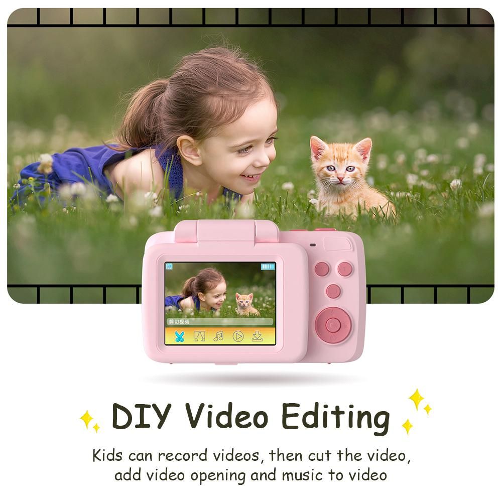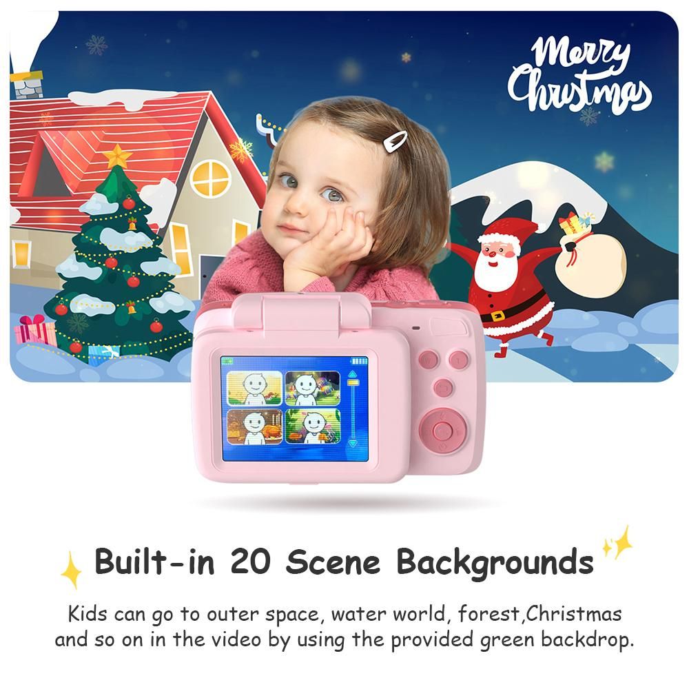 Buy 720P Kids Digital Video Camera Camcorder Supports Video Editing Background Changing Built-in Battery with 1 * 1.5M Green Backdrop Birthday Festival Gift for Children Boys Girls in Nigeria