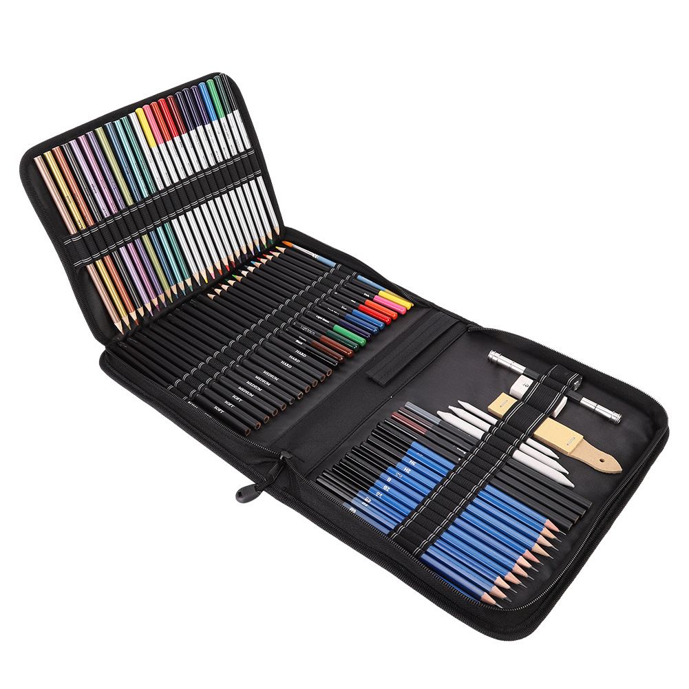 1*72pcs Sketching Drawing Colored Pencil Art Charcoal Pencil Eraser Set with Carrying Bag