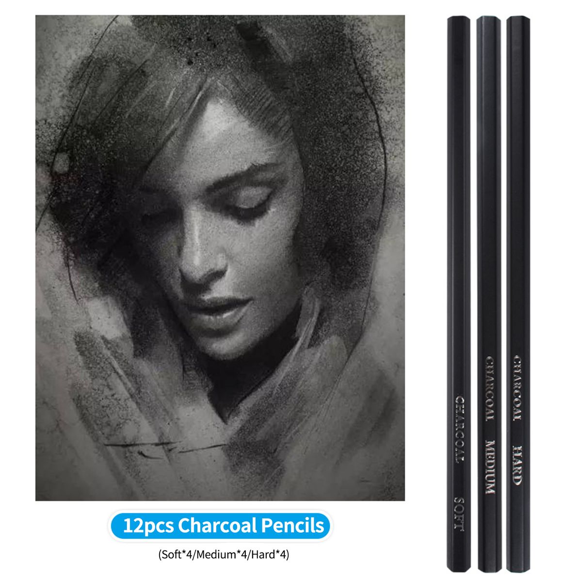 12 * Charcoal Pencil(Soft*4/Medium*4/Hard*4)
