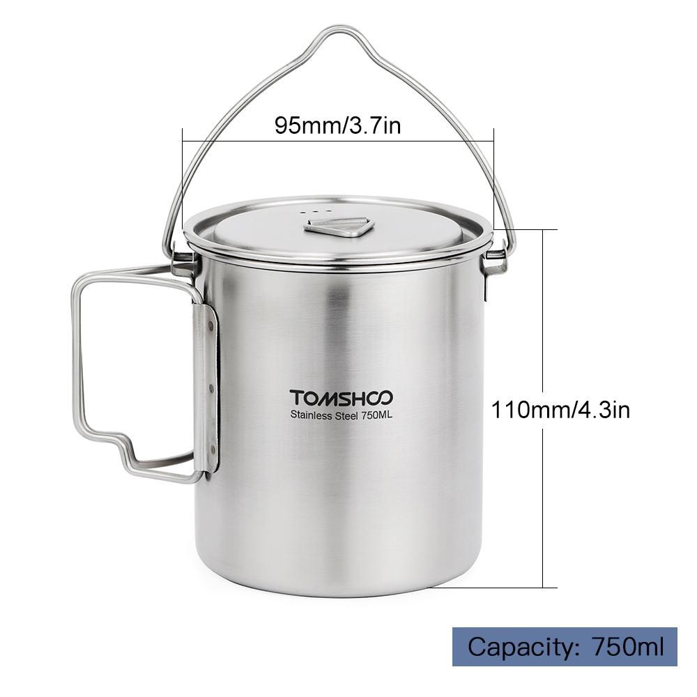 Buy 750ml Stainless Steel Pot Portable Water Mug Cup with Lid and Foldable Handle Outdoor Camping Cooking Picnic in Nigeria