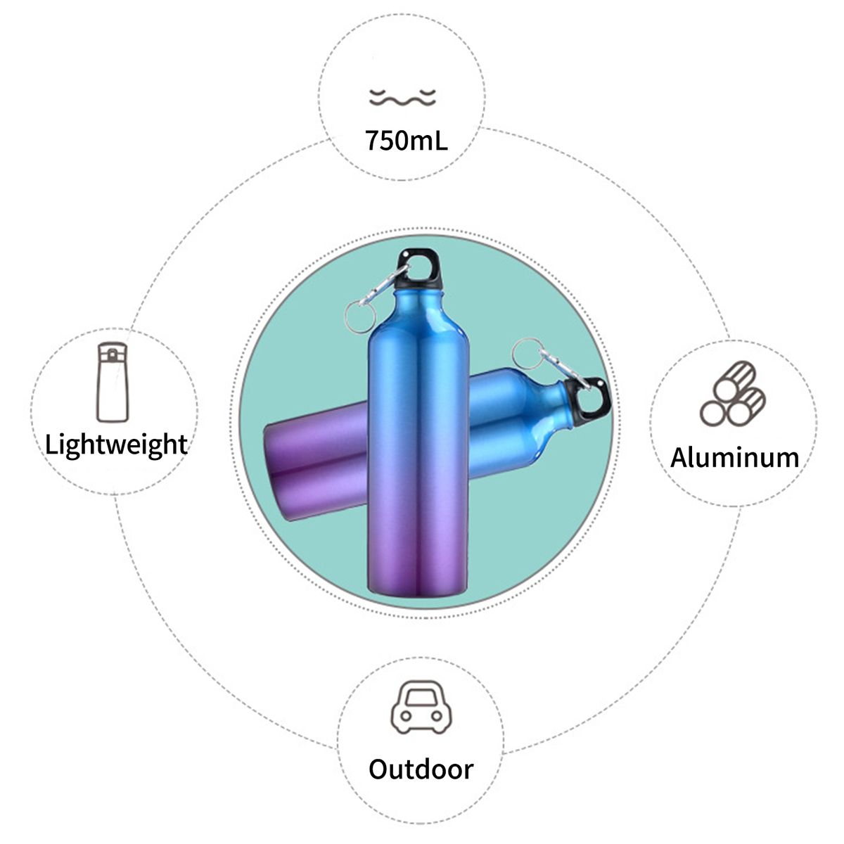 The 750mL water bottle will meet your normal water needs for a day. The water bottle is great for traveling, gym, yoga, outdoor camping, hiking, cycling, climbing, snowboarding, skiing, and surfing.