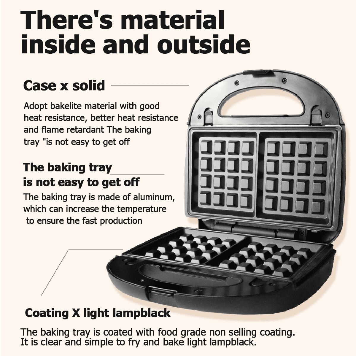 Features:--Simple 3 steps, one opening, one closing and one button, you can have a delicious breakfast--A variety of baking plates, switching at will, pattern breakfast, depending on your preference!--People who have no experience in cooking can also make fancy food--The shell is made of bakelite with good heat resistance, better heat resistance and flame retardant--The baking tray is made of aluminum, which can speed up the temperature rise and ensure the fast production--Food grade non selling coating, fried light lampblack, clear and simple