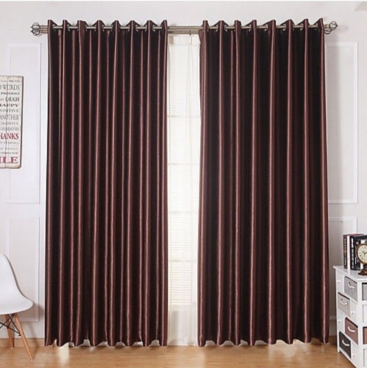 | This curtain is very contemporary with the velvety running down the primarily Brown curtain which when combined with the silver eyelet rings creates a very modern curtain. |