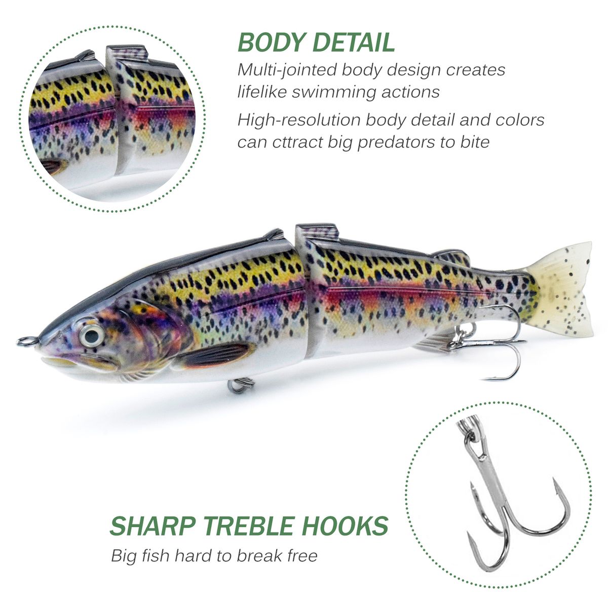 Durable carbon steel link joint delivers a natural swimming action to attract predators\' attention.