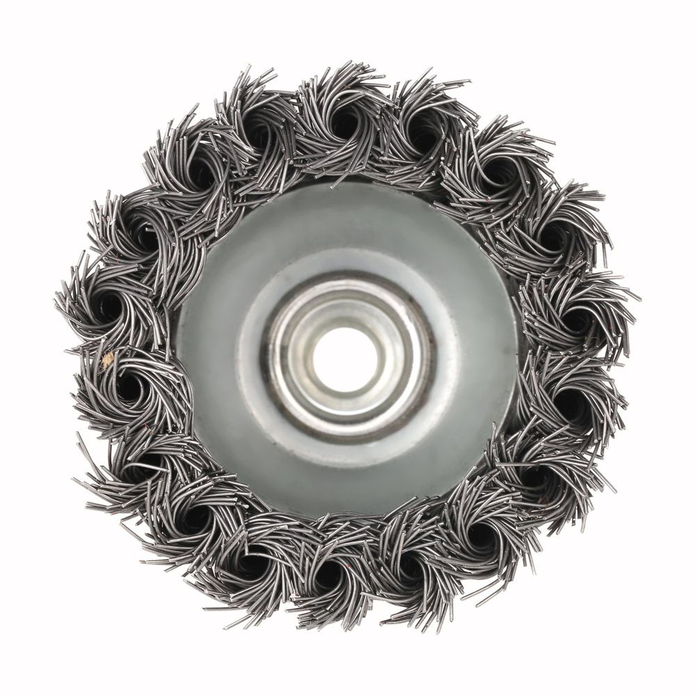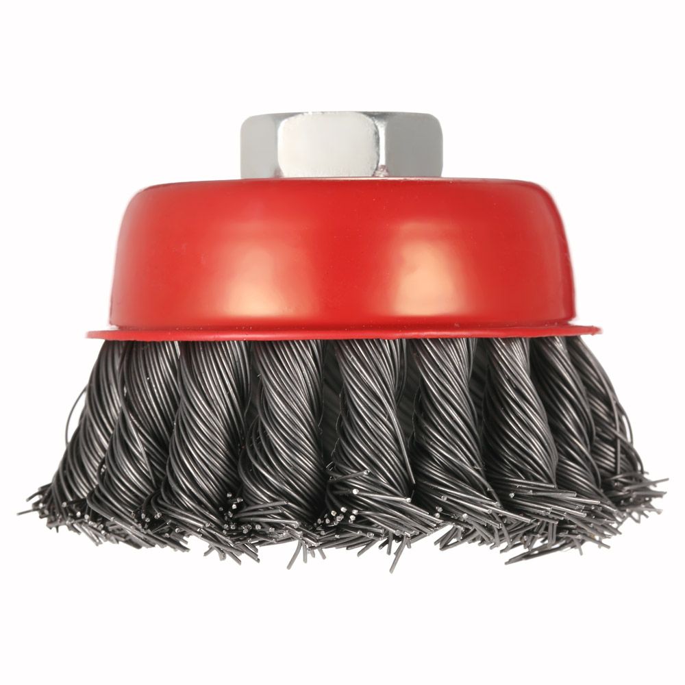 This professional good quality 3 quot; knotted cup brush with steel wire is for heavy material removal. The crimped steel wire provides flexibility for light removal of rust amp; paint amp; general cleaning.