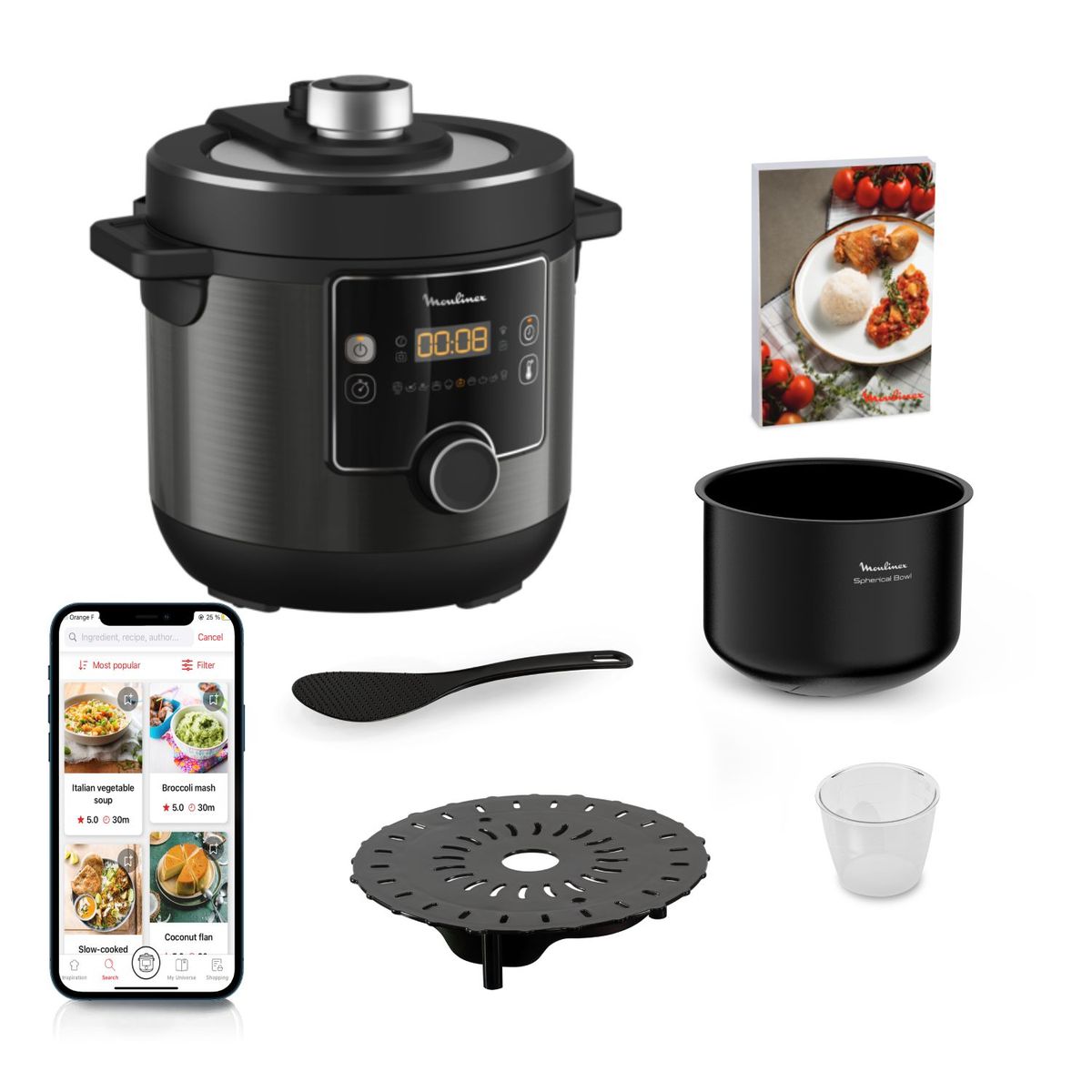 - Endless Inspiration: For easier and simpler home cooking day after day, browse inventive and delicious Moulinex recipes online or discover them directly in your recipe book.