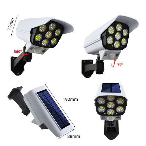 - Keep your home property safe and intruders away. With 77 Bright LEDs, motion-Activated, Plus realistic dummy security camera. red warning light flash at night , Detect Intruders Stay away from your household