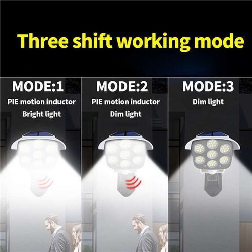 - ① Light off at night, just red light flashing, strong light mode on when motion detected;