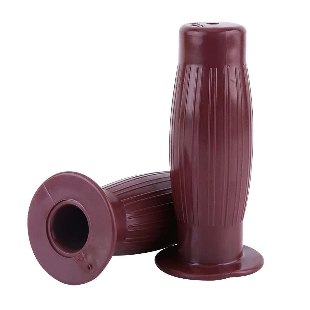 Description: This is a pair of soft rubber handlebars, which is perfect for motorcycles with 7/8in(22mm) left handlebar and 1in(24mm) right handlebar, such as for Honda/ Yamaha/ Kawasaki/ Suzuki/ Truimph Motorcycles . Injection molding rubber constructed and no ugly cutting edges, itprovides more comfort on long rides. With line textures on the surface, this pair of handlebars is extremely non-slip for a safe driving. There are 3 colors of vintage style hand grips for the needs, and how about bring one pair to make your motorcycle cool?
