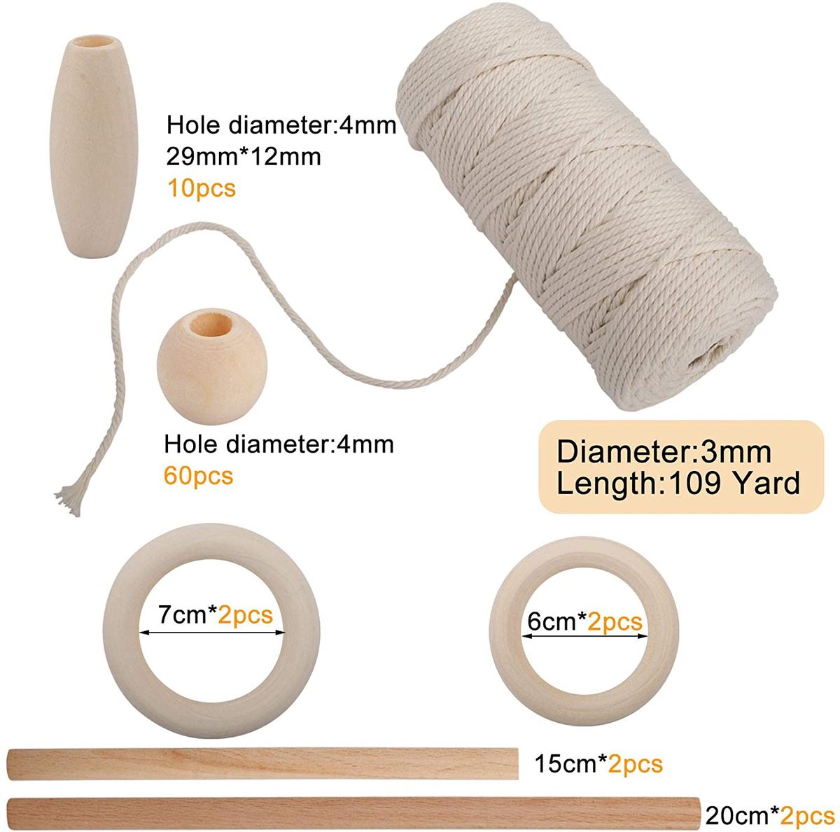 81 Sets of 3mm DIY Macrame Strings 109 Yards Macrame String Supplies with 70 Wood Beads 4 Pieces of Wood Rings 4 Pieces of Wood Wall Hanging Craft Sticks, Plant Hangers