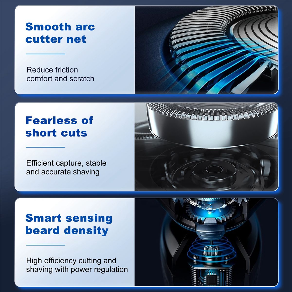 2.Men's Electric Replacement Heads, men's electric shavers features electroplate surfaces for anti-abrasion, double-ring hypoallergenic stainless blades and a powerful motor. 6d flex floating heads rotate to the of your , head, neck and , offering closer and cleaner trimming without irritation.