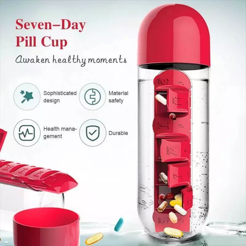 20 ounce capacity. Seven compartment organizer for each day of the week.