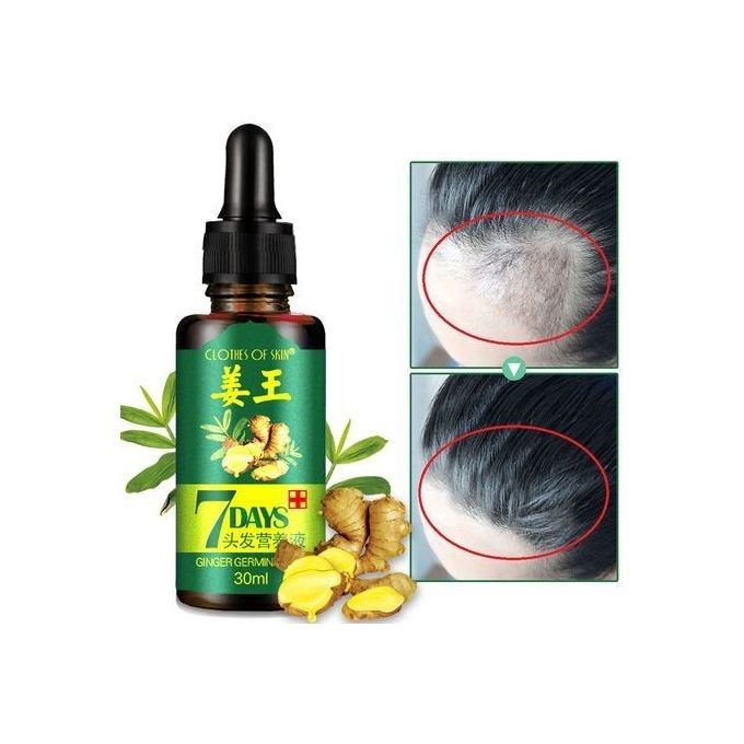 Today, we are delighted to introduce to you one of the most effective Chinese organic remedies for Hair Loss. Clothes of Skin 7Days Ginger Germinal Growth & Hair Loss Treatment Oil. 7Days Ginger Germinal Oil is made of Chinese Herbal Medicine which can effectively penetrate the scalp and strengthen the hair root to prevent breakage. It is extracted from various herbal nutrients such as polygonum multiflorum, Angelica, Ginseng, Chuanxiong etc to effectively nourish hair roots, penetrate the scalp, strengthen the hair roots and achieve hair growth and solidification. It also nourishes and thickens the capillary and thereby preventing the hair from falling.