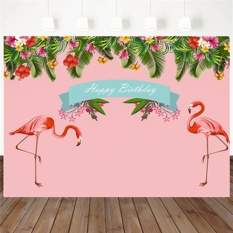 7ft 5ft Tropical Flamingo Birthday Vinyl Studio Backdrop Photography