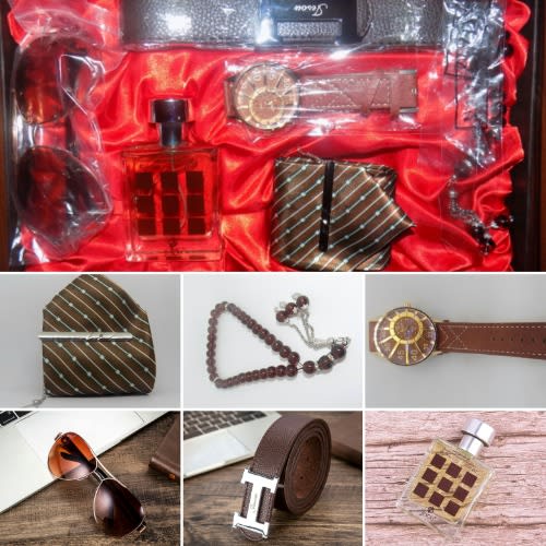 This beautiful 7in1 Men's Gift Set comes with quality and fashionable wristwatch, sunglasses, perfume, necktie, tie clip, bracelet, and leather belt and is a perfect gift to give out to that special man.