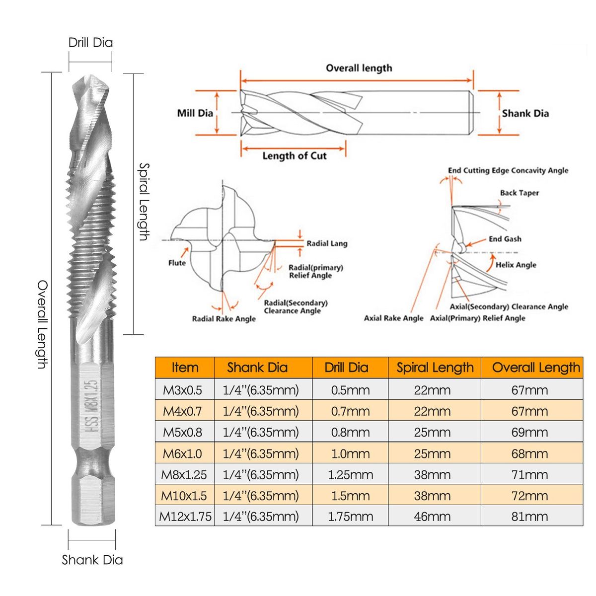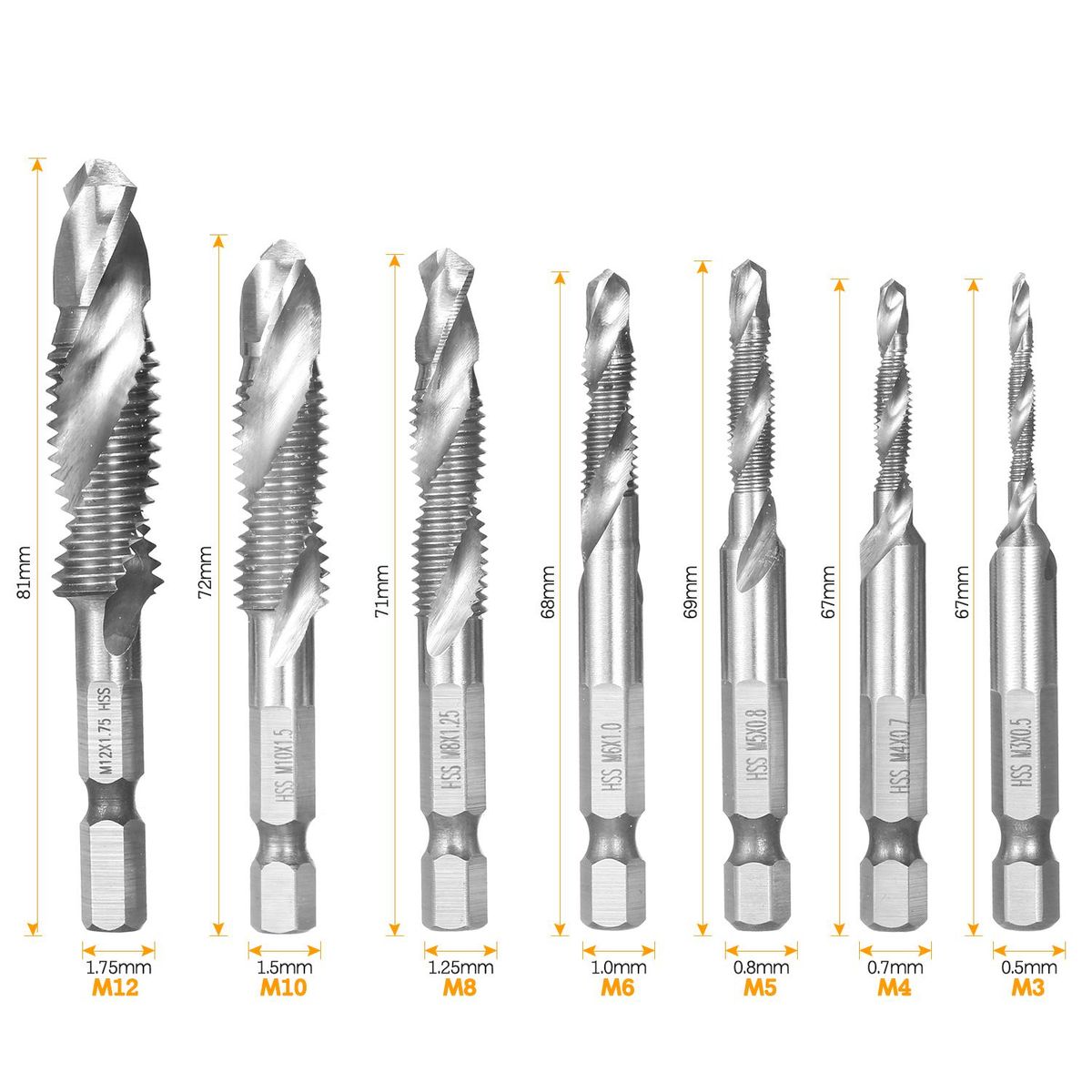 Buy 7Pcs Combination Drill and Tap Set Metric Thread HSS M3-M12 Screw Tapping bit Tool Quick Change 1/4in Hex Shank in Nigeria