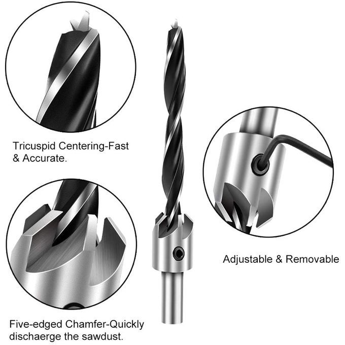 Hex Wrench: Gift - easy to use the combination of Hex Key to adjust or disassemble the countersink drill bit and the five-flutes chamfering.