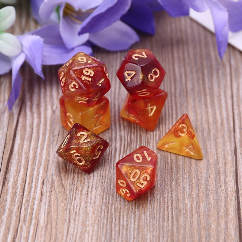 1 * 7pcs D20 Polyhedral Dice Glitter Double Colors 20 Sided For