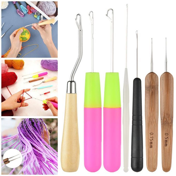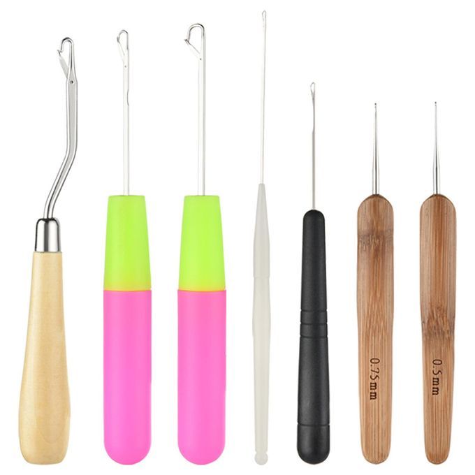 1 x Dreadlocks Crochet Hook (0.75 mm)1 x Dreadlocks Crochet Hook (0.5 mm)1 x Plastic Latch Hook ( 1.3 mm)1 x Plastic Latch Hook(1.7 mm)1 x Plastic Latch Hook(3.4 mm)1 x Plastic Latch Hook(4.7 mm)1 x Wooden Bent Latch Hook
