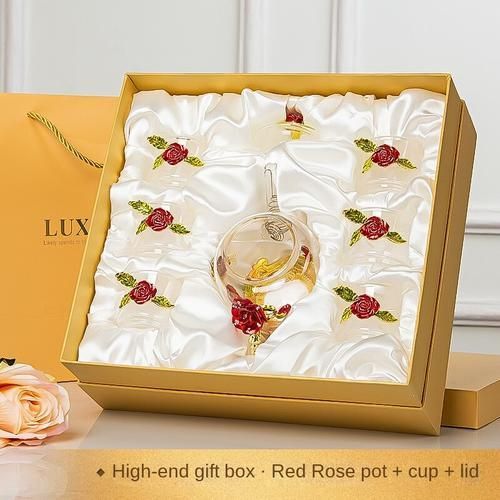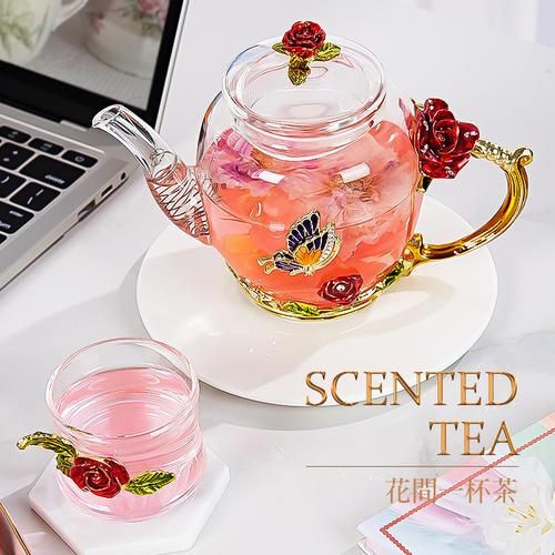 Red rose Enamel Crystal Flower Glass Teapot for Hot and Cold Drinks Home Drinkware Office water kettle Tea set coffee pot