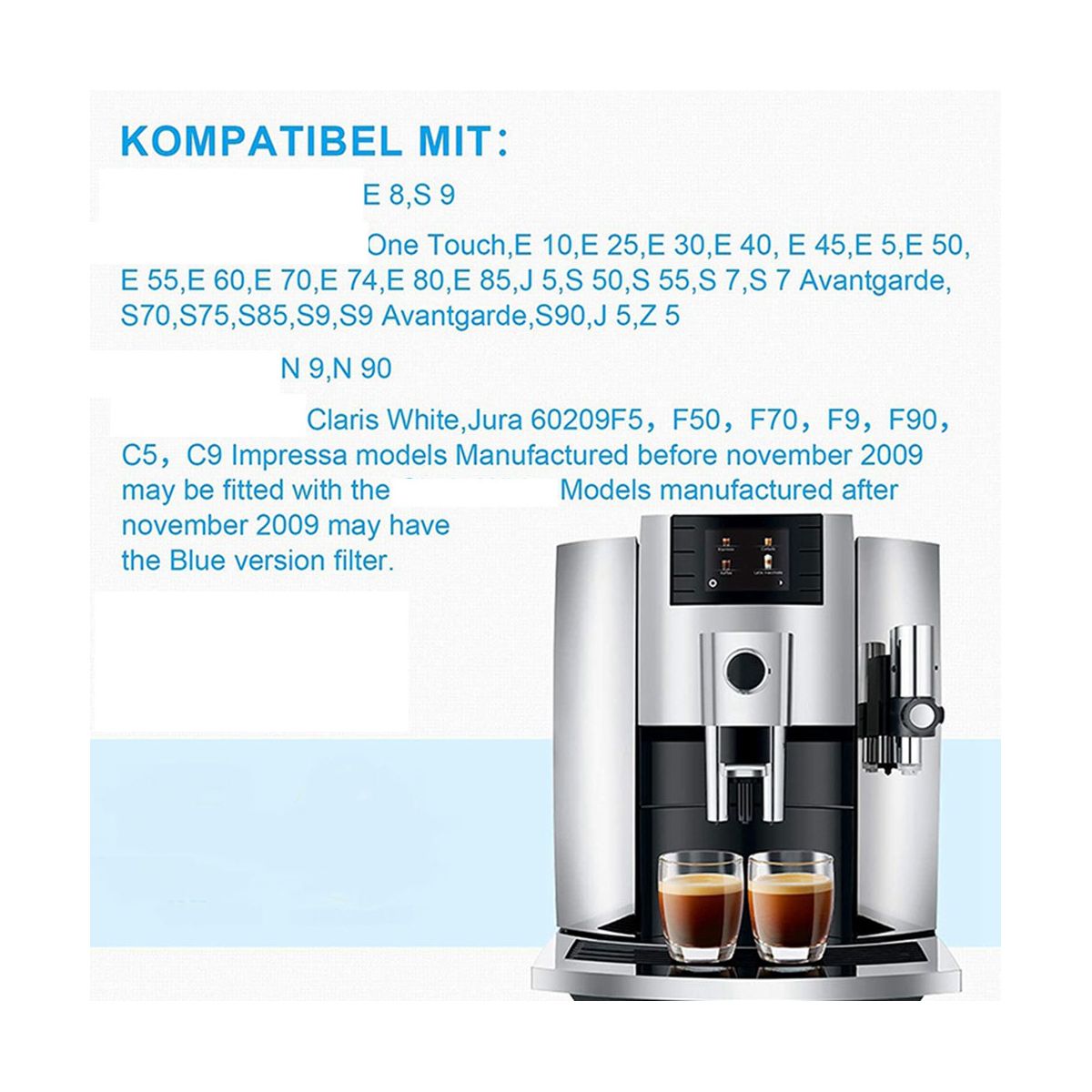 Compatible with-Suitable for Capresso models E8, S9, lmpressa One Touch, E10, E25, E30, E40, E45, E5, E50, E55, E60, E70, E74, E80, E85,J5, S50, S55, S7, S7 Avantgarde, S70, S75, S85, S9, S90, J5, Z5 , Nespresso: N 9, N 90, like Claris White, Jura 60209 Not for ENA series.