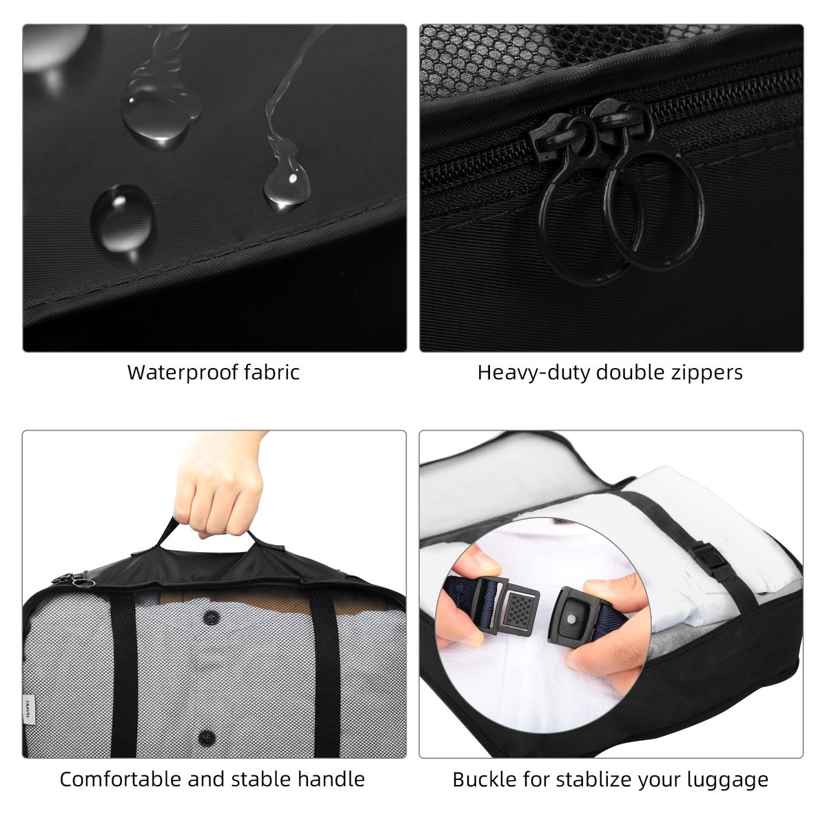 PREMIUM QUALITY: Made from 290T waterproof fabric, your clothes and other stuff inside these packing bags won't easily get wet. The mesh bags of large size and medium size are both equipped with heavy-duty double zippers and buckle design. It is easy for you to pack and unpack your clothes. The mesh details allows you to quickly identify the stuff you put in the bag.