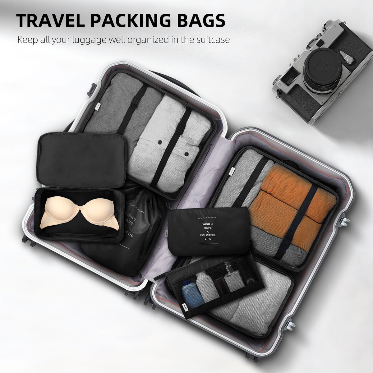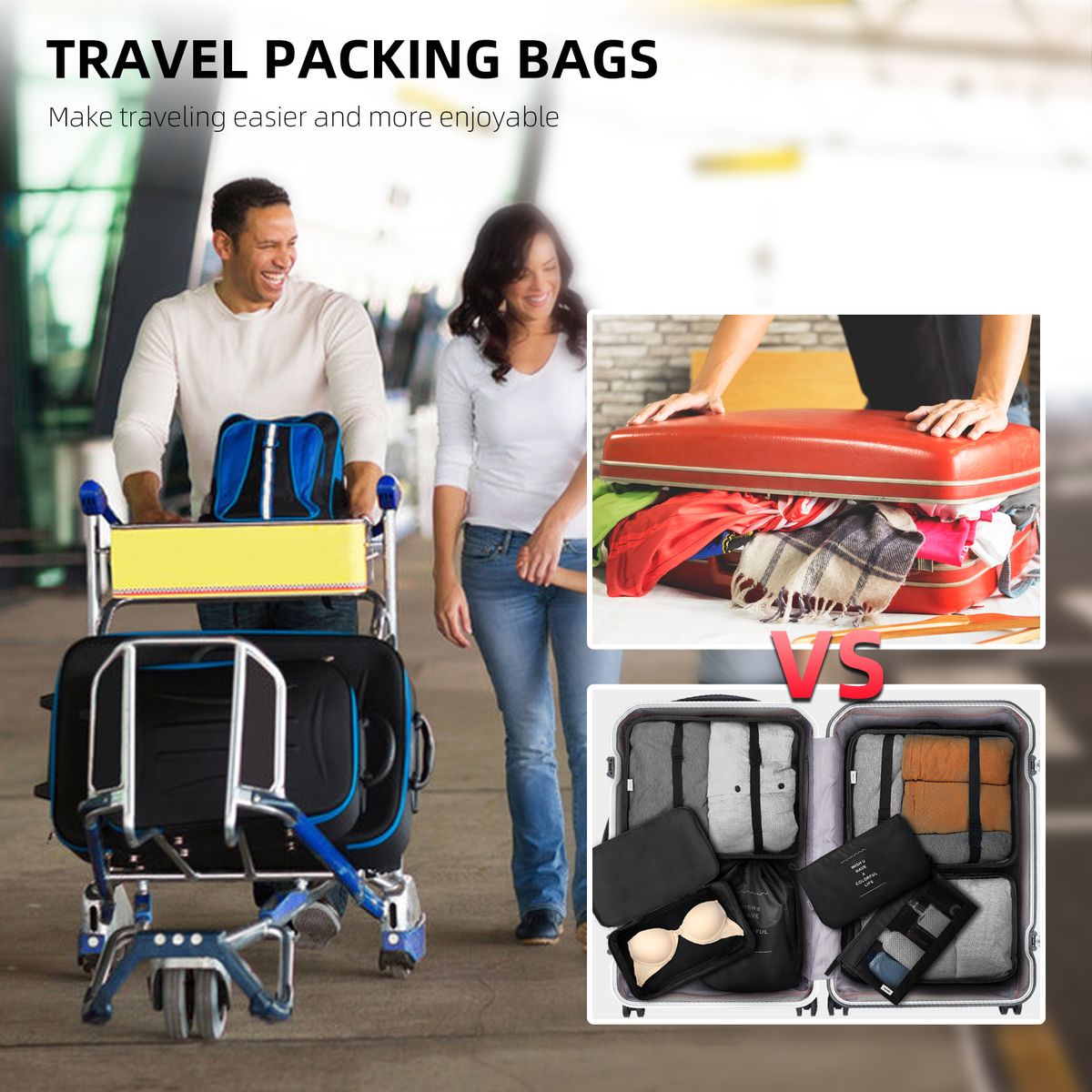 7PCS Packing Cubes Travel Packing Bags Luggage Organizers Mesh Bags Toiletry Bag Underwear Bag Separate Storage for Travel Business Trip