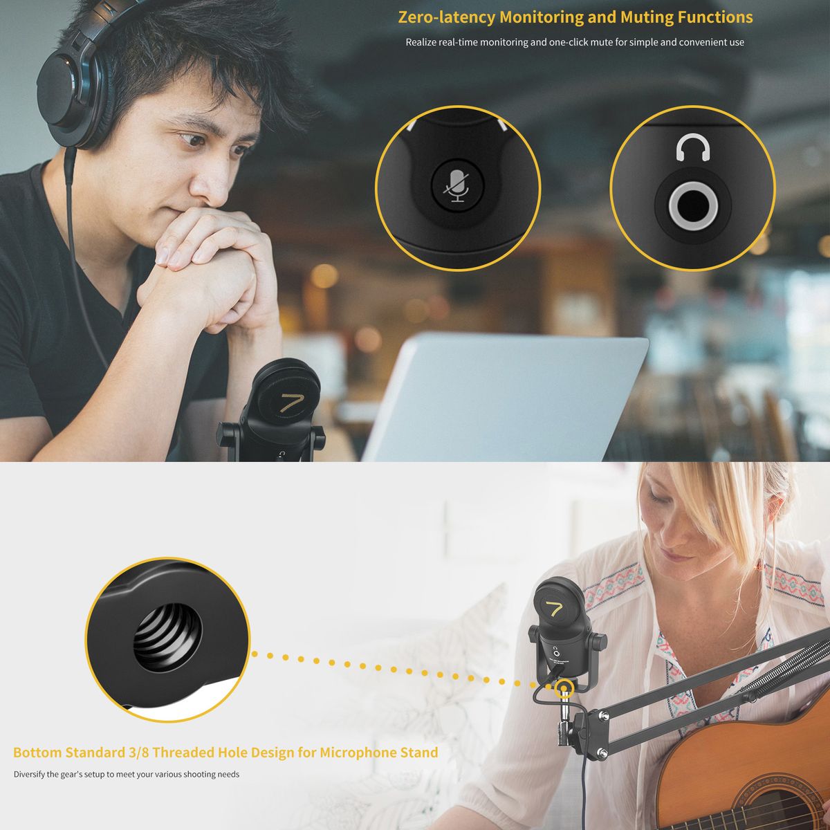 Integrated 360-degree swing mount and detachable desk stand, you can position the mic to meet your different demands.