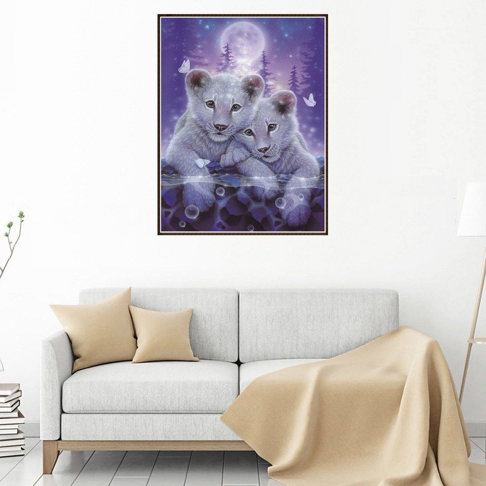 Cute tigers pattern diamond painting, which consists of high definition canvas amp; resin rhinestones, is a vivid interior decoration for your home.
