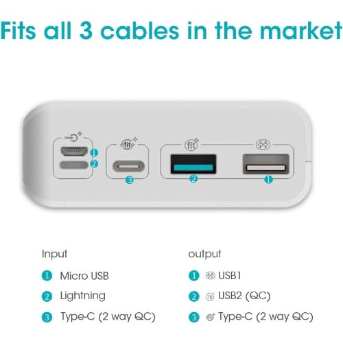 Buy 8+ 30000mah Power Bank With Mirco Usb, Lightning And Type C Input & Output port white in Nigeria