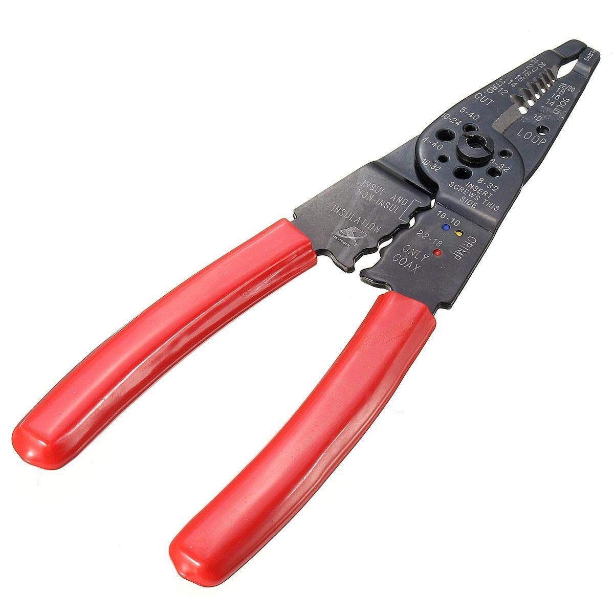 Induction hardened edge stays sharp longer. Strips and cuts 10-22 AWG. Pliers-style nose allows pulling and looping in wire.
