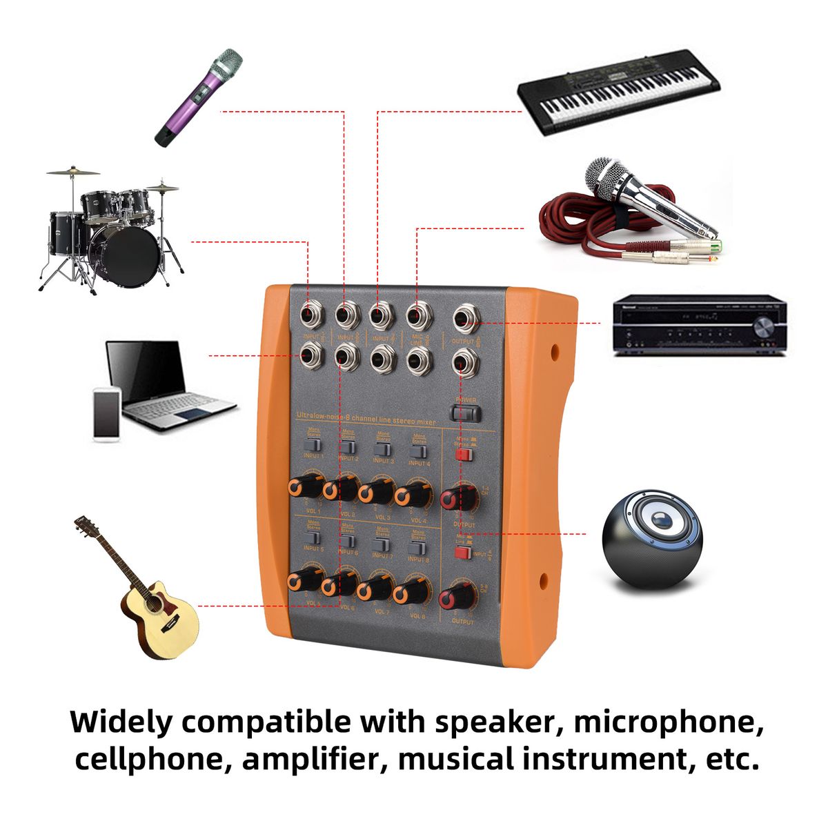 Widely compatible with speaker, microphone, cellphone, amplifier, musical instrument, etc.