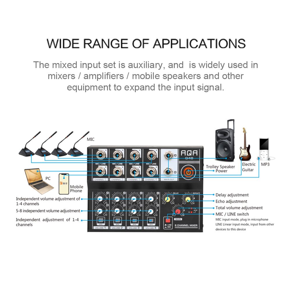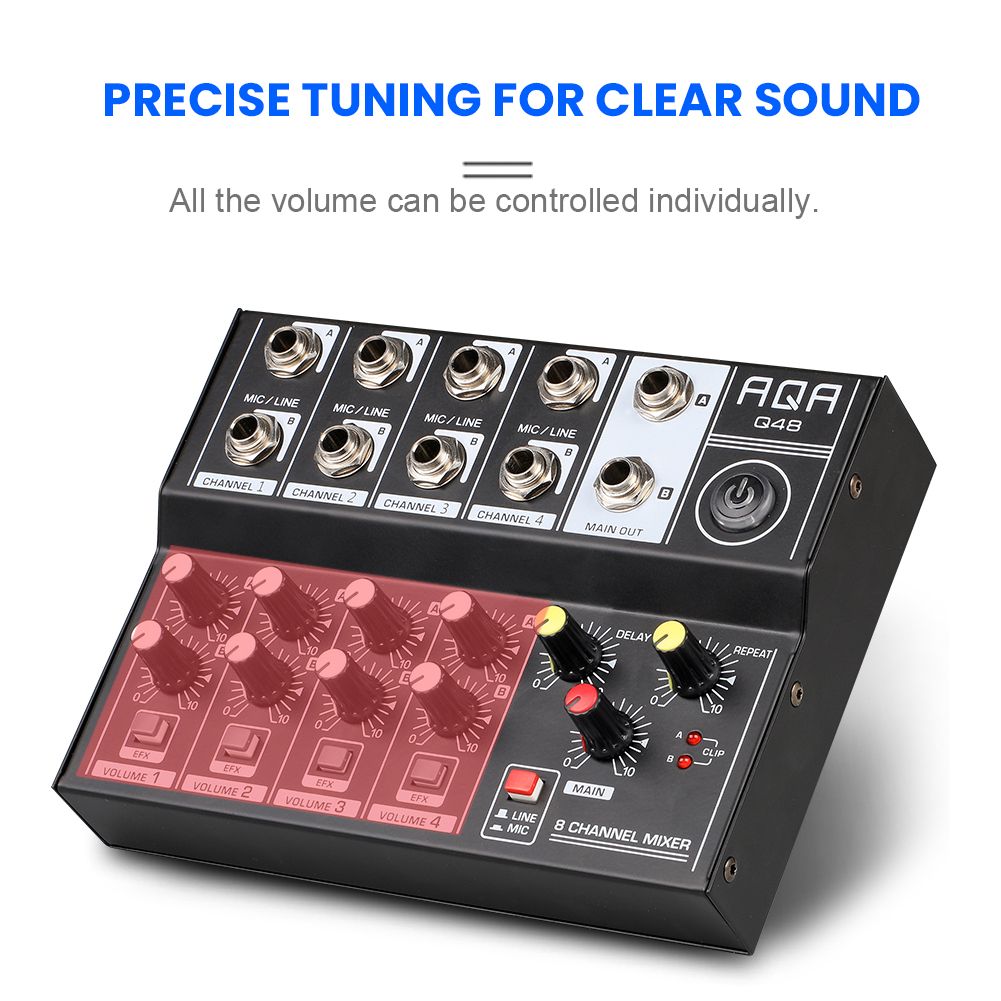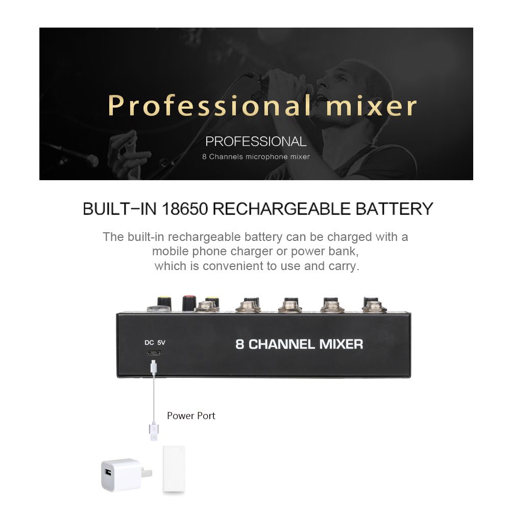 The mixer audio is a multi-purpose 8-channel mixer that can be meet users of home music recording, webcast, Singing, small party, and other needs.