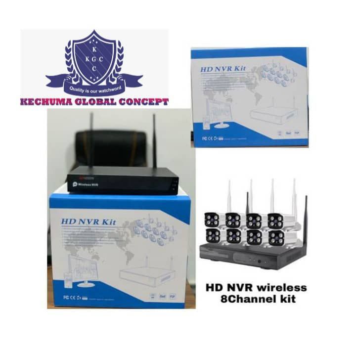 his wireless wifi NVR CCTV system comes fully packed with 8 weatherproof HD cameras for both outdoor and indoor installation. It is completely wireless because there is no wire connection between the DVR and the camera units. The signal transmission is by wifi network and 5.8ghz frequency signal. The system is viewed by smart phone and also through bigger LCD screens or TV screens with the HDMI or VGA ports.It is a multi user system, this means that more than 2 or more people can configure the system to their various mobile phones to view the location footages.View, record, picture and save your locations from anywhere and anytime worldwide under a very high definition transmission.A great security and surveillance wireless CCTV system for homes, offices, warehouses, stores and super marts, etc.