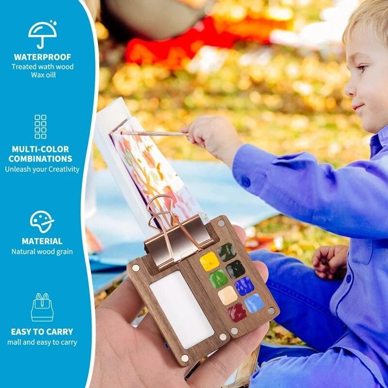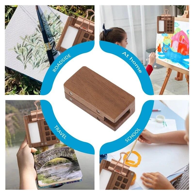 Buy 8 Grid Portable Sketchbook Palette, Wooden Colour Palette Box, With A Clip (Without Paint) in Nigeria