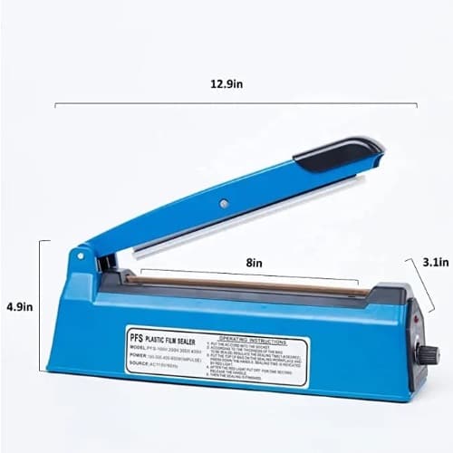 Energy Conservation Impulse Sealer , Non-Toxic, Odorless, Durable, Reinforced and Compression could seal more than 10000 bags. The heating element only heats when pressed close and automatically turns off according to the set mode, Portable & Compact with a sealing element of 12 & Prime; (300mm), All-metal durable build quality, Heat and electricity resistant handle with an anti-rust aluminum case. Includes replaceable spare
