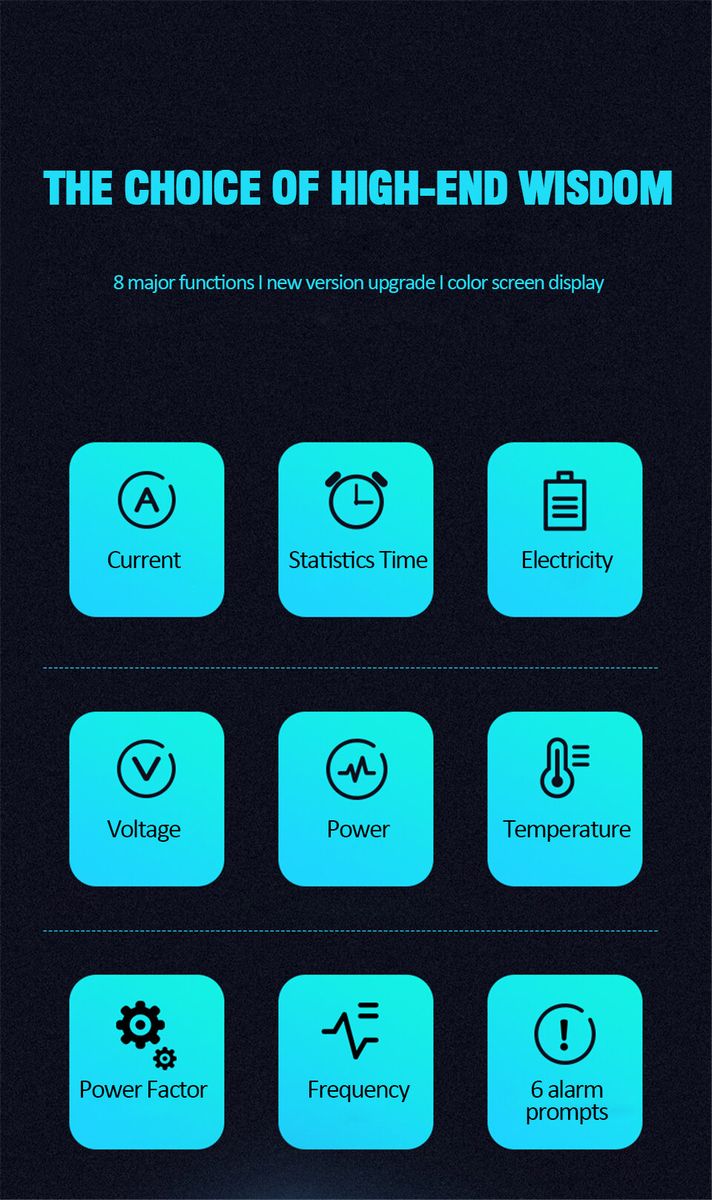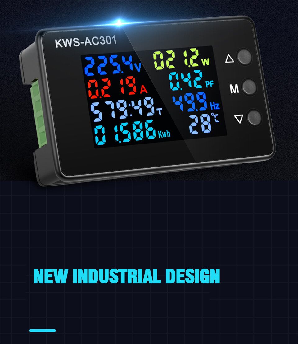 【Digital AC Multimeter】This 8 in 1 energy meter simultaneously measures and displays voltage, current, power, electrical energy, timing, temperature, frequency and power factor, equipped with split current transformer,no need to buy another, can be installed on anywhere flexibly.【Easy to Read】 The LCD HD color display screen, combined with the backlight function, makes it easy to read the displayed data, giving you an excellent visual experience.【Overload Alarm Function】The voltmeter will make a sound and the numerical unit will flash simultaneously to give an alarm when exceeding the preset value.You can preset numerical limits as your need.【Electric Energy and Timing Clearing Method】 press the △ button for 3 seconds and the timing flashes, click the M button to clear the timing, double-click the M button to wrap to the electric energy, and click the M button to clear.【Warranty】 Please rest assured to buy, if you have any questions, please feel free to contact us, we will give you satisfactory service.