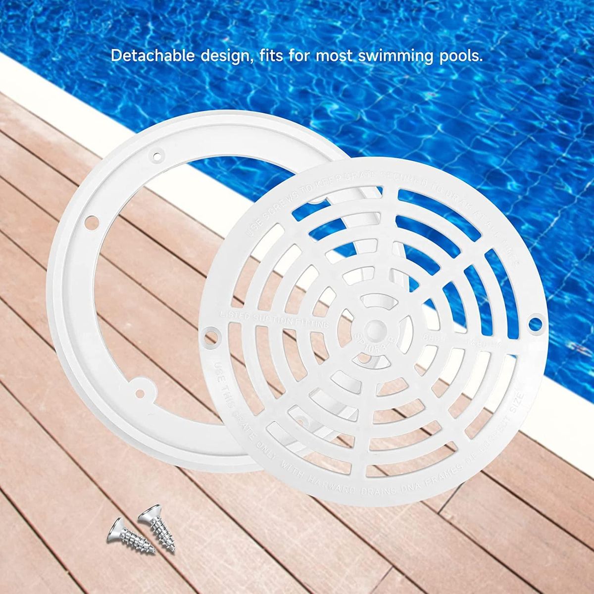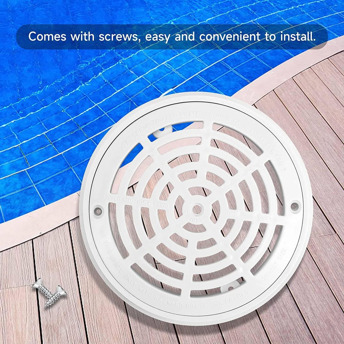 This pool drain cover repment comes with screws, it only takes a few minutes to easily rep the old pool cover with a new one, easy and convenient.