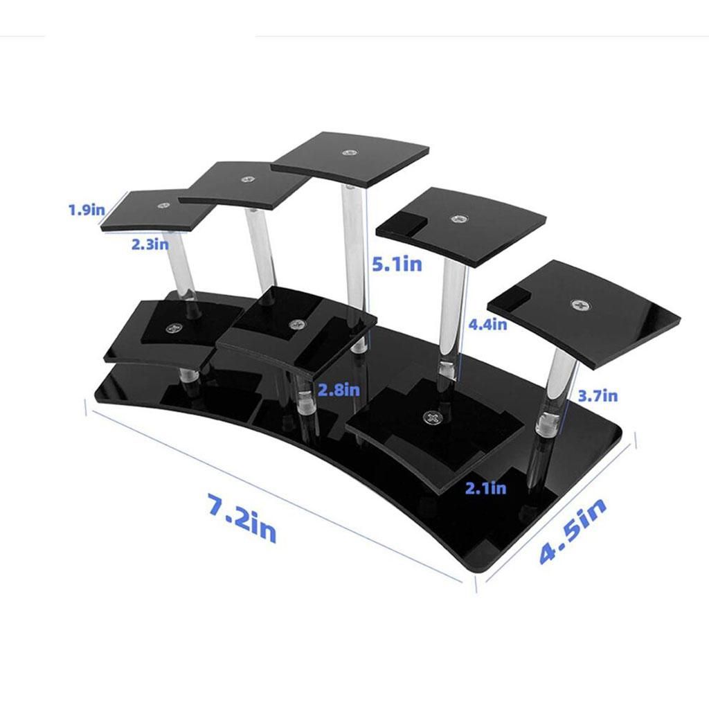 The product size is 7.09x4.53x5.12inch, 8-Layer stand shelf which is used for cupcakes, cosmetics, kitchen supplies, small action figures, and so on.
