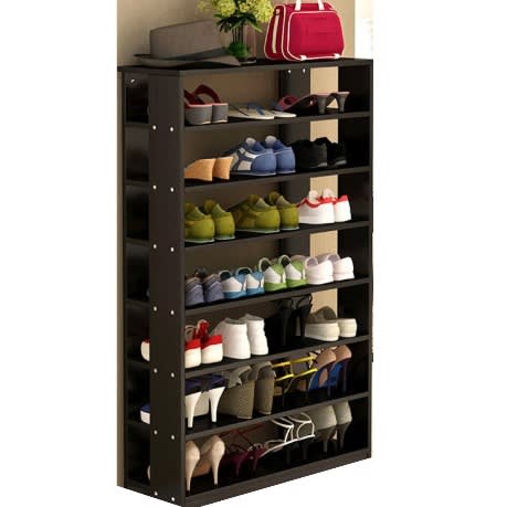This is an affordable shoe rack for every home. It is usable by all age range and it a 8 layer shoe rack that help your shoe well organized and doesn't take much space in your room.it also comes with a material that can protect your shoes from dust and stain