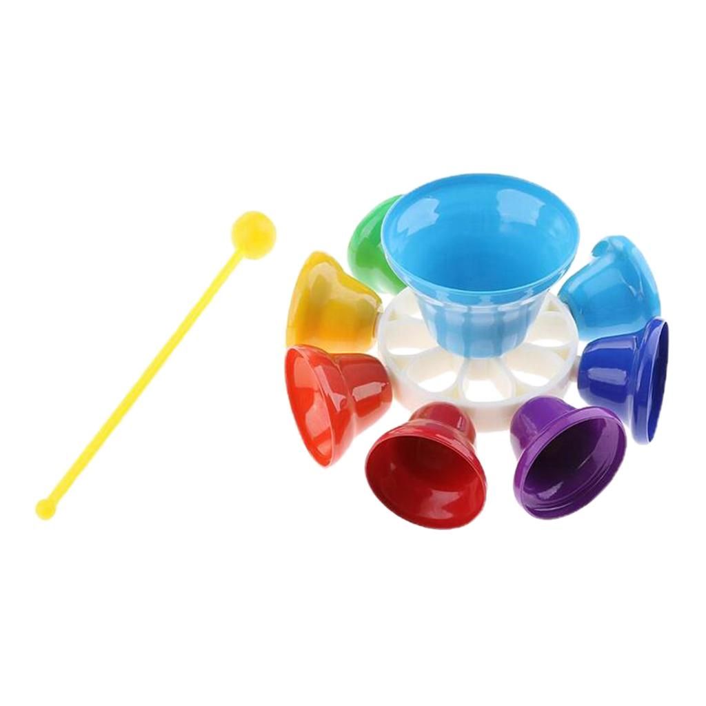 Set of 8 musical bells,each bell is a different color and a represents a different musical .