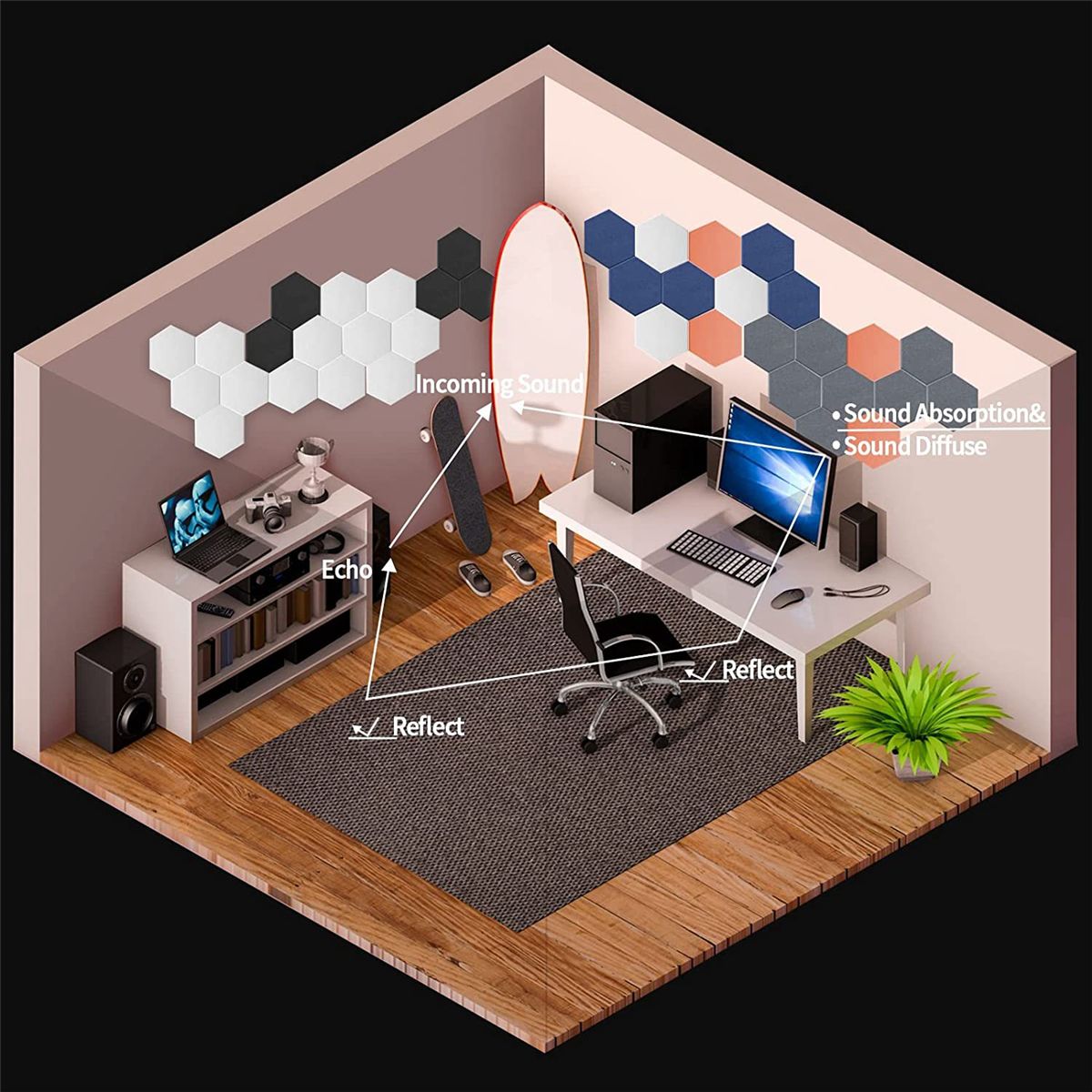 sound insulation panels are multifunctional and can be used in professional studios rehearsal rooms concert podcasts churches home theaters vocal kiosks home studios offices private spaces for men and kennels Sundries etc By using the absorption panel to eliminate unnecessary sounds other sounds can be made clearer