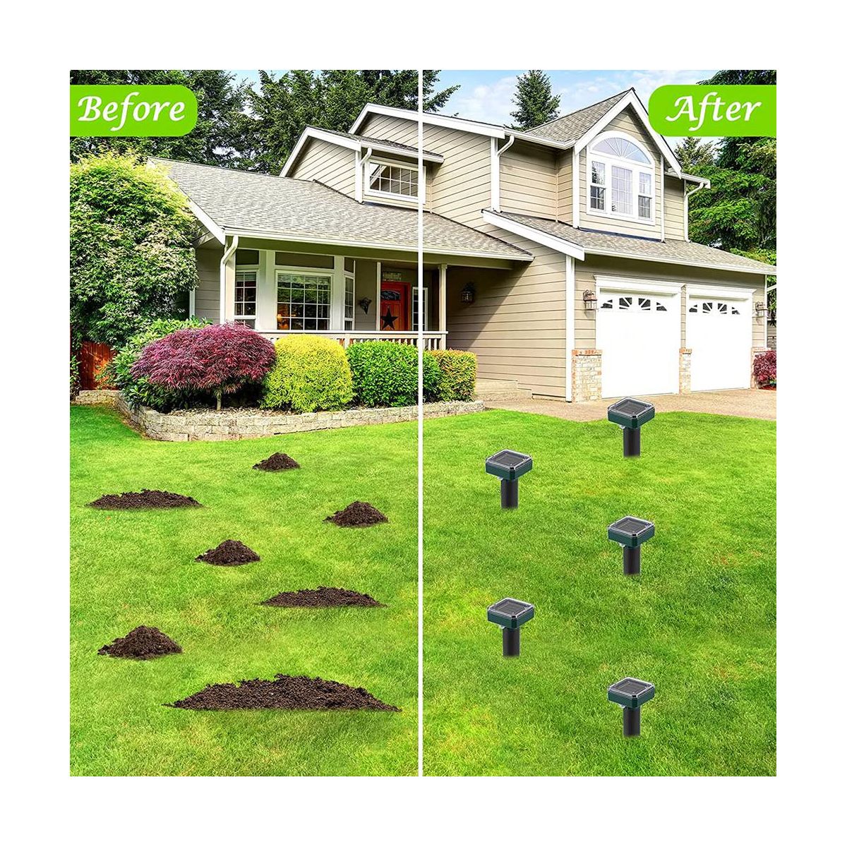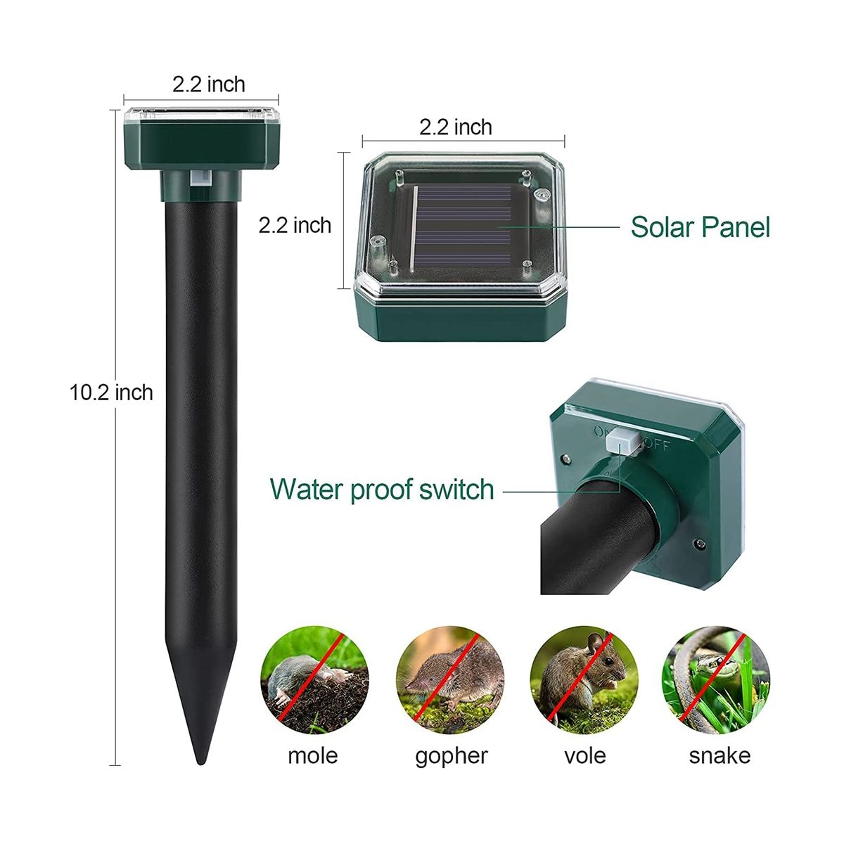 Solar-Powered Mole Deterrent This Mole are by solar panel 4-hour solar charge lasts for 5 working no need to rep battery