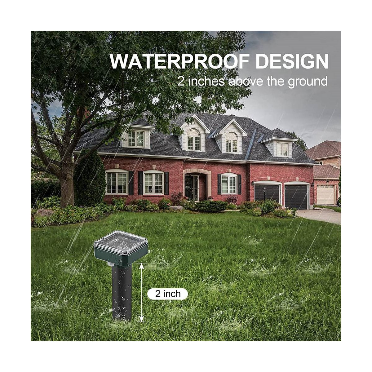 Weatherproof Solar Sonic Mole Spikes Sonic pulses emitted 3s sonic pulses for 30s it penetrates the soil for and forces pests to evacuate the area covered by the sound