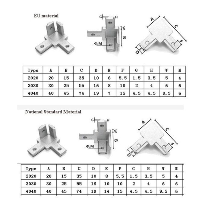 L Shape 3- Way 90 Inside Corner Bracket Connector, 2020 EU standard